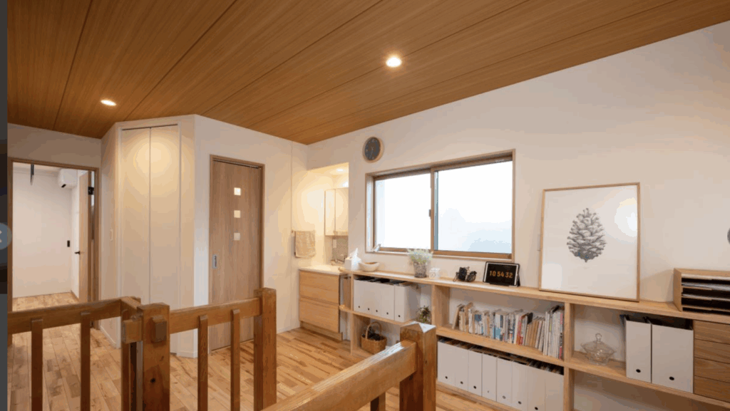 お部屋の壁を丸ごと活用したオーダーメイド壁面収納です。リビングや書斎、寝室など用途に合わせて棚や扉の配置を自由に設計。